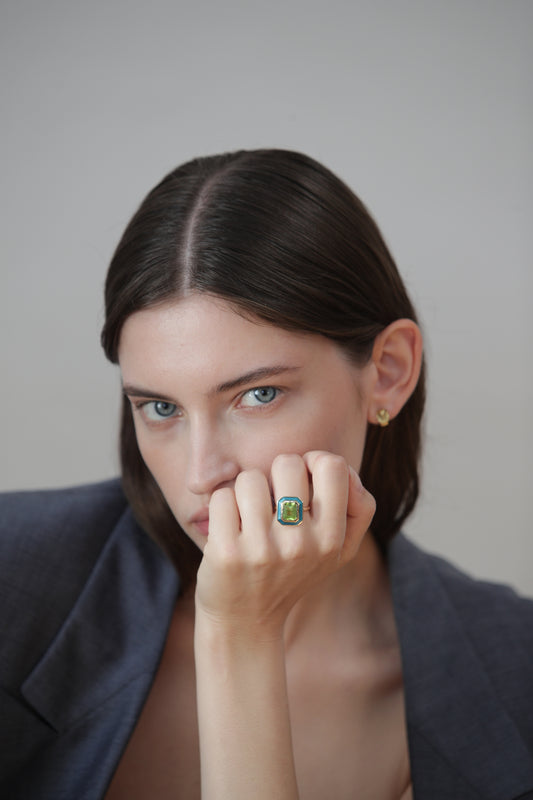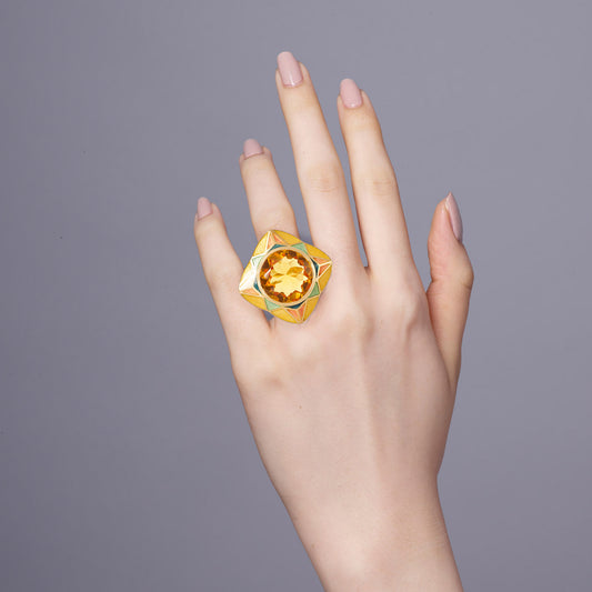 BAGUETTE SMOKY QUARTZ TRIANGLE RING HAND-CRAFTED IN LONDON